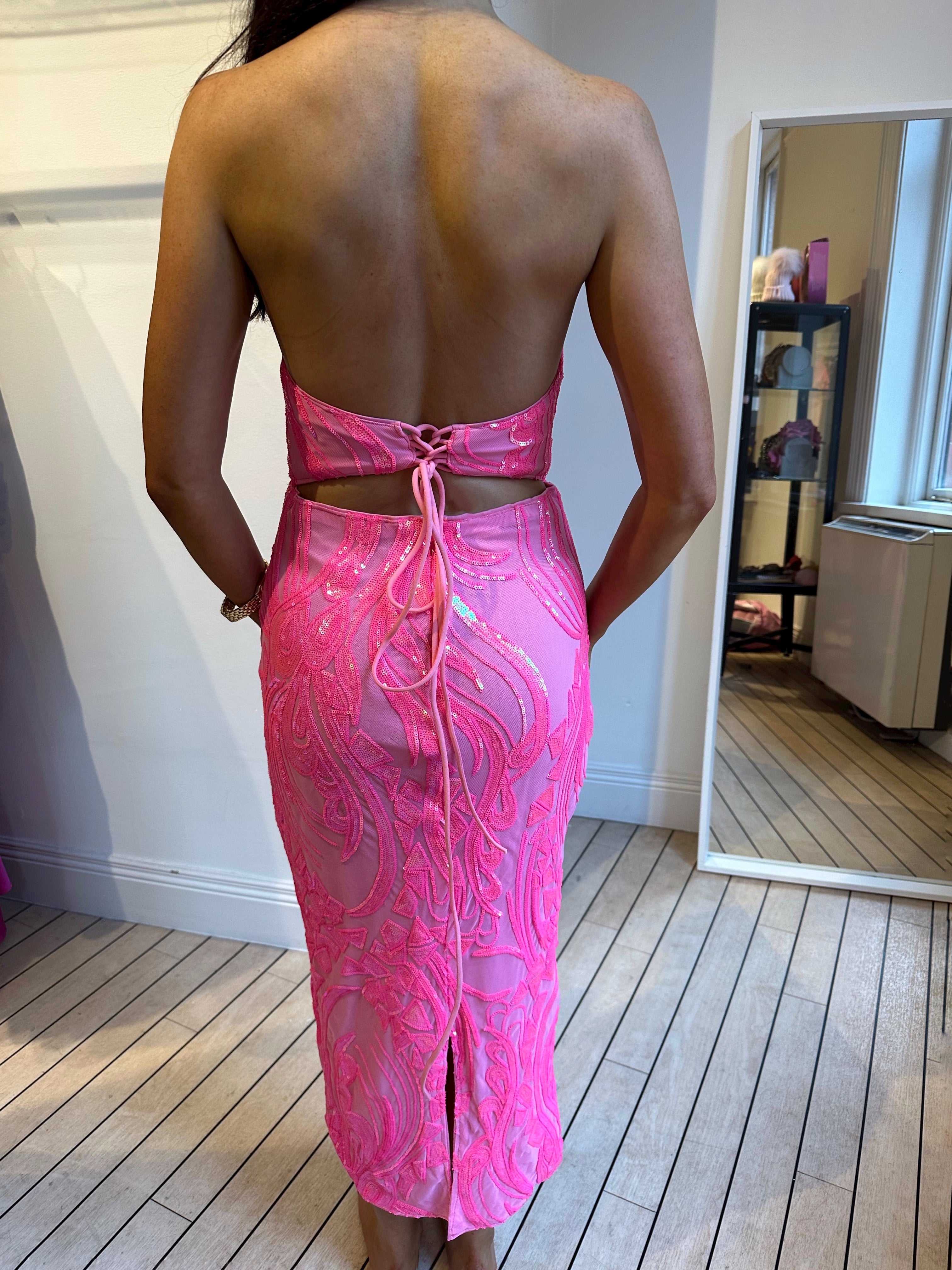 GISELLE IRIDESCENT BLACK MIDI DRESS