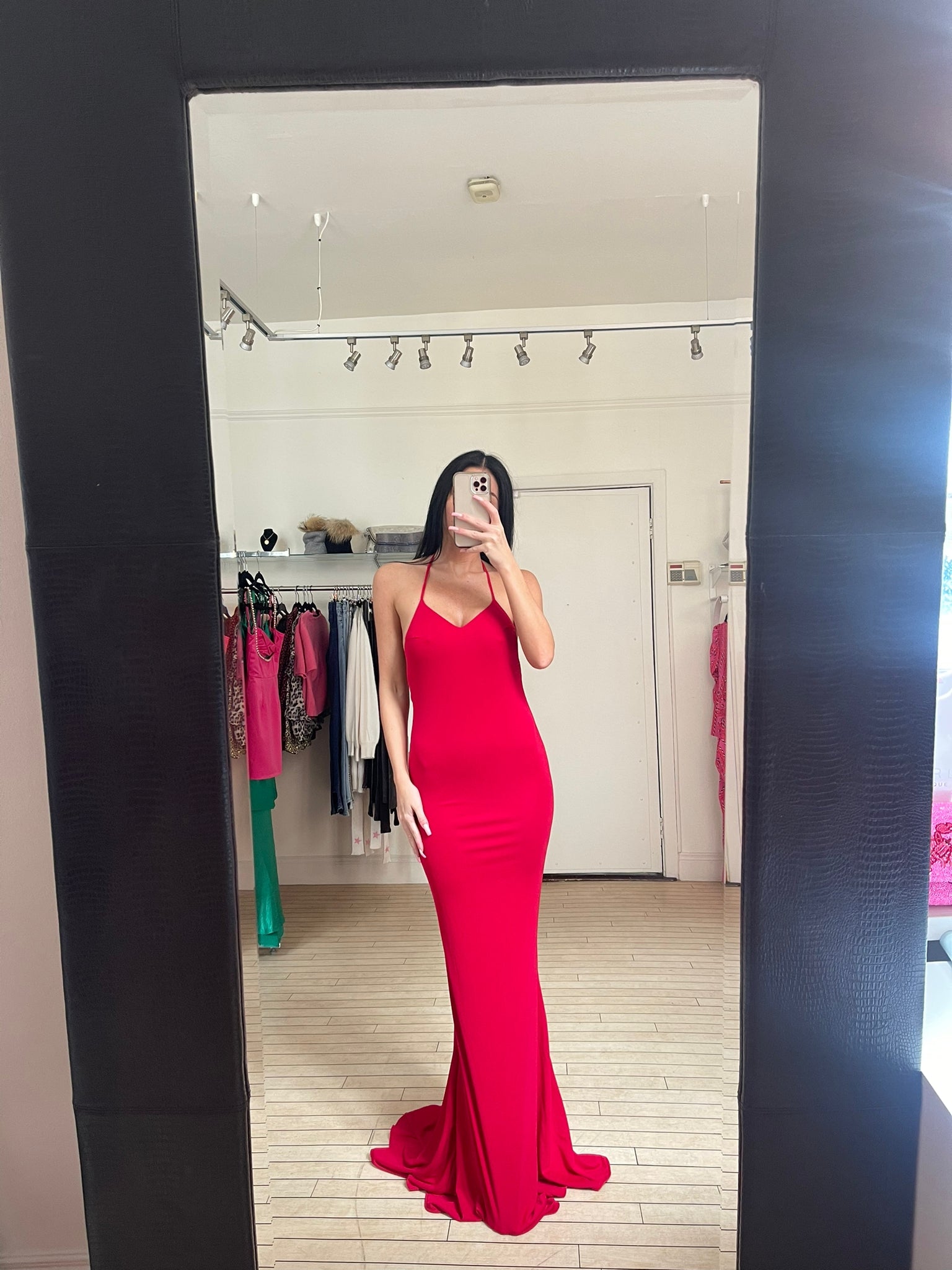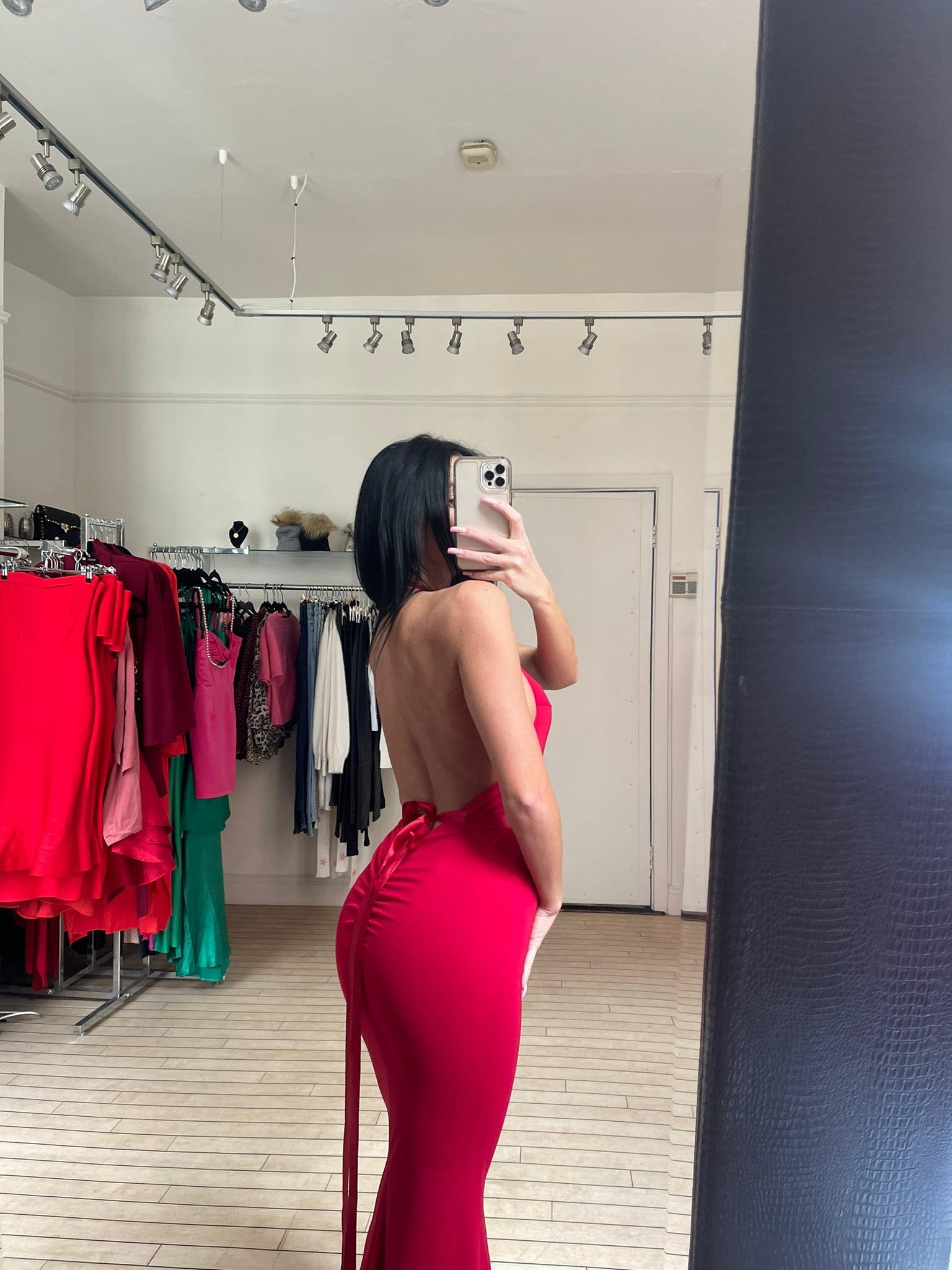 Stand out for your debs in our stunning red debs dress! Sweetheart neckline, no back and ruching on the bum! Belt is sold seperatlyΒ